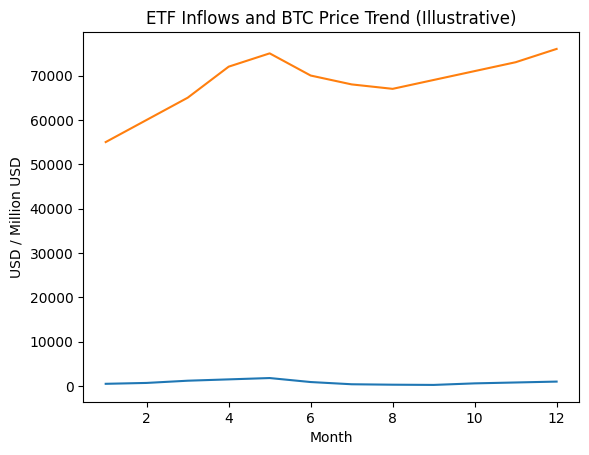 ETF inflows support price floors, but they do not generate vertical expansions unless accompanied by leverage and retail participation.