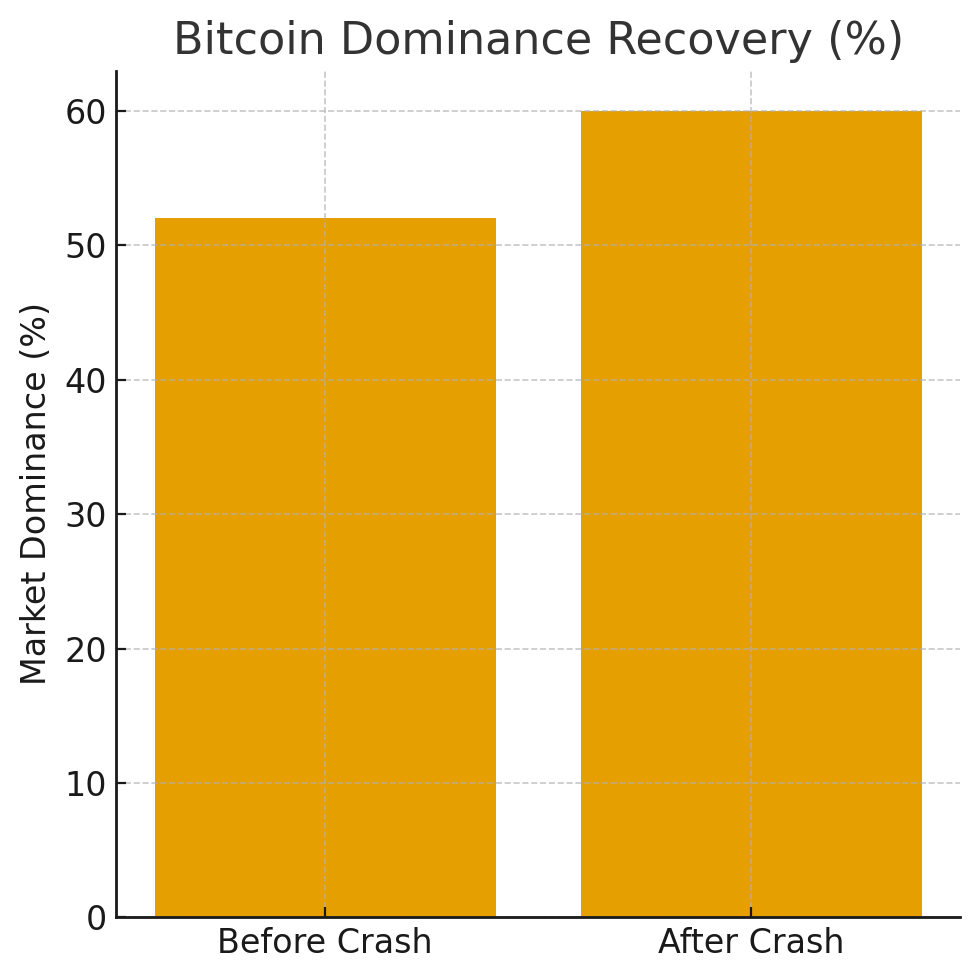 During the plunge, Bitcoin’s price fell sharply—from the “$120,000s zone” down toward the “$100,000s zone”—dragging the broader crypto market’s capitalization down by roughly 12% in a single session. In that maelstrom, however, BTC dominance (i.e. Bitcoin’s share of total crypto market cap) staged a recovery, returning to 60% levels. Becker sees this as confirmation: capital is rotating back into Bitcoin as a safer anchor, away from overleveraged altcoins.