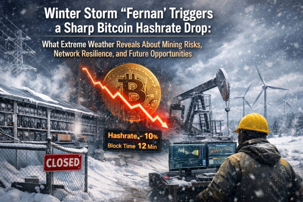 The winter storm Fernan caused a noticeable but temporary disruption to Bitcoin mining, reducing hashrate, slowing block times, and reminding the industry of its dependence on real-world energy systems.