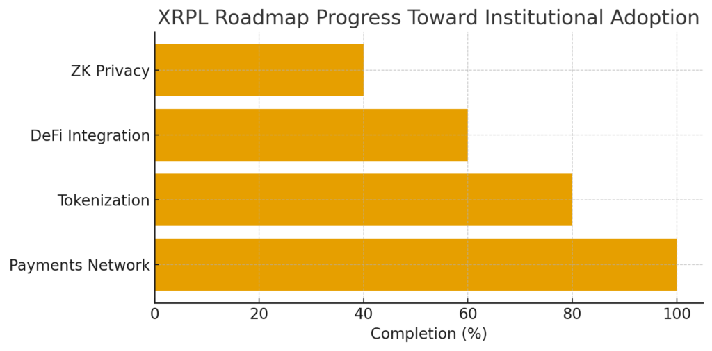 Future roadmap updates targeting native lending, ZK proofs, and privacy tools (such as XLS-66, XLS-101) are critical enablers for enterprise-grade DeFi.