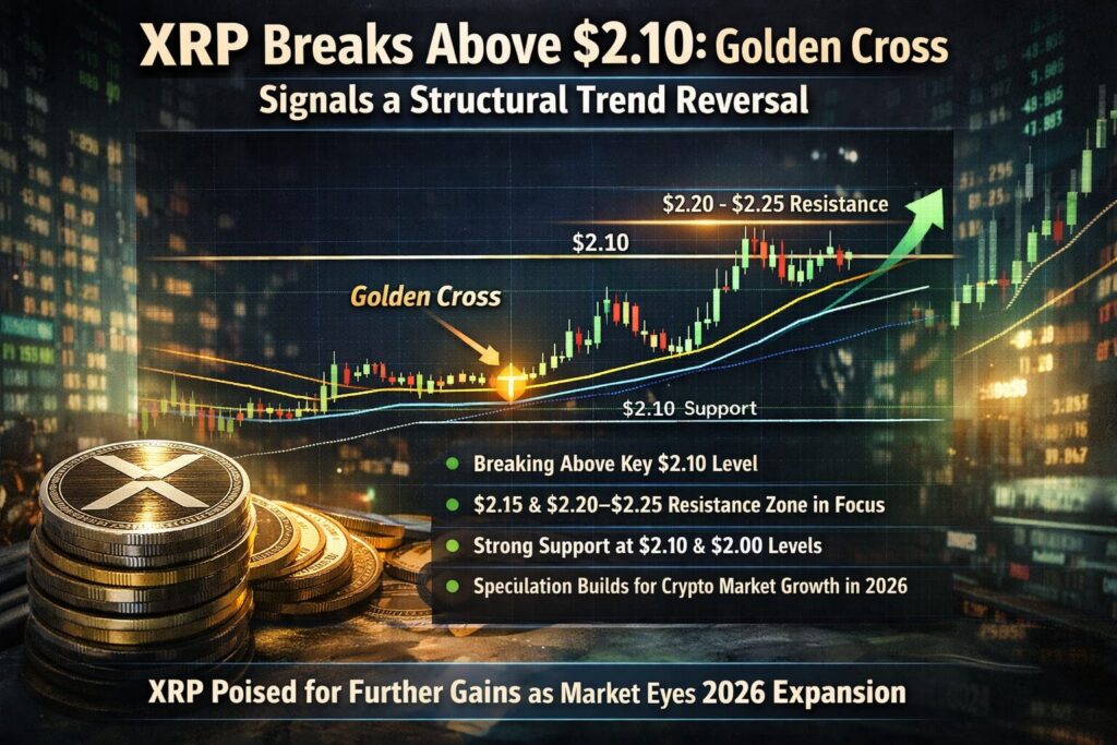 After months of stagnation, XRP has decisively reasserted bullish control, breaking above $2.00 and completing a technically significant Golden Cross. The immediate challenge lies at $2.15, with a successful breakout opening the door toward $2.20–$2.25.