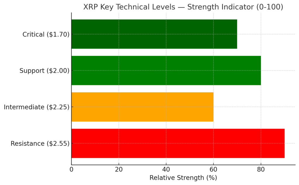 In essence, XRP is at a technical and macro crossroad. The downward momentum is clear: shorter-term EMAs are undercutting mids, the 50/200 death cross looms, resistance remains firm around $2.50–$2.60, and support around $2.00 is fragile. The broader market backdrop — rising Bitcoin dominance, macro liquidity issues, risk-off sentiment — further complicates a bullish scenario.